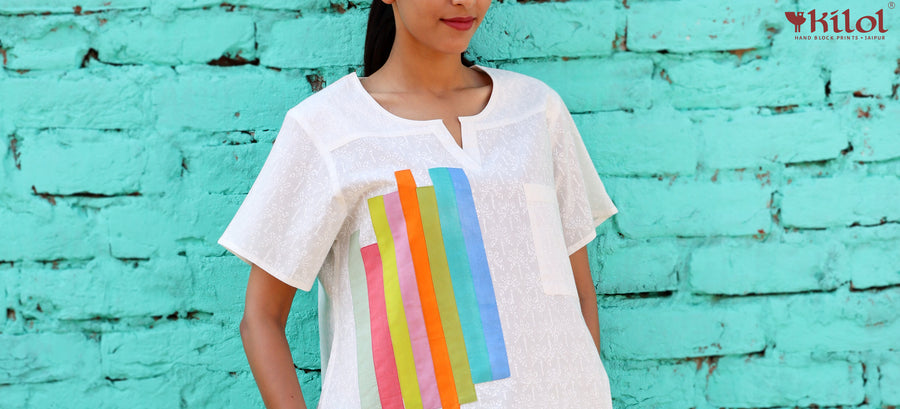 At Kilol, we have a wide range of products in the apparel category- ranging from ethnic wear like Kurta, Dupattas and Sarees to modern wear like Kaftans, Tunics, Dresses and Pants all designed and tailored in house by our team of fabricators.
